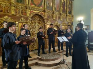 14 апреля в Кутеинском мужском монастыре г. Орши состоялся вечер великопостных песнопений «Весна духовная» в исполнении мужского хора «Всехсвяткий» (г. Минск) под руководством регента Дмитрия Токмакова. В программу вечера вошли богослужебные песнопения Великого поста, духовные стихи и канты на музыку как церковных, так и светских композиторов.