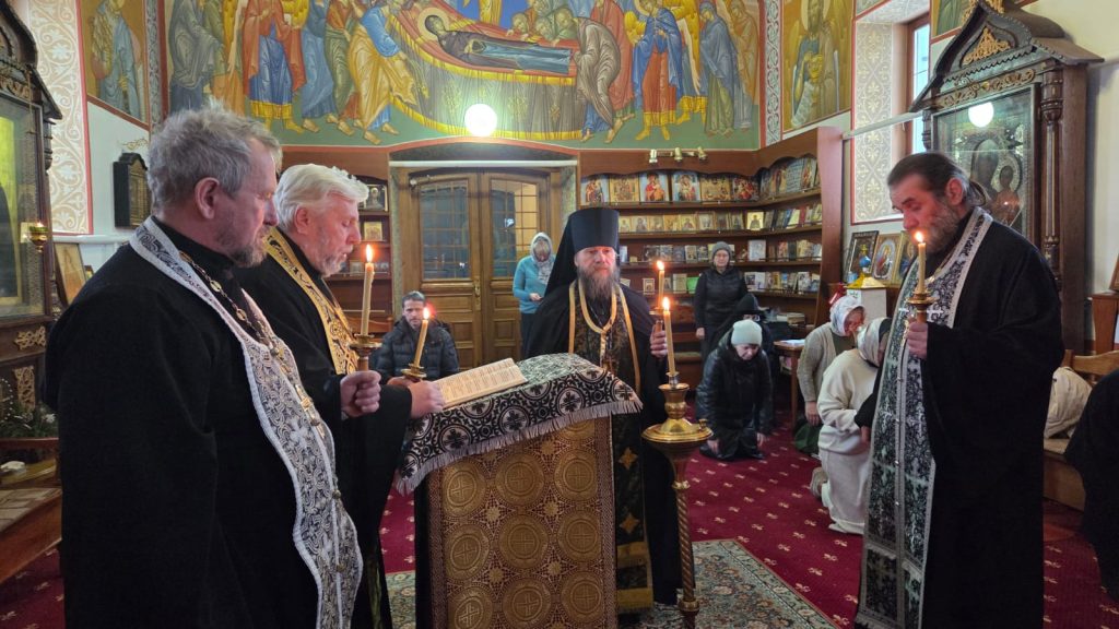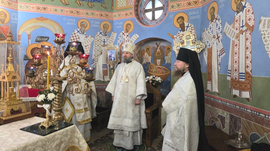 Его преосвященству сослужил настоятель монастыря игумен Нил (Подобед), иеромонах Герман (Пещанский).