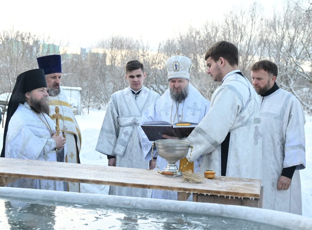 По завершении литургии епископ Евсевий совершил Великое освящение воды, а затем обратился к молящимся с поздравлением и архипастырским благословением.